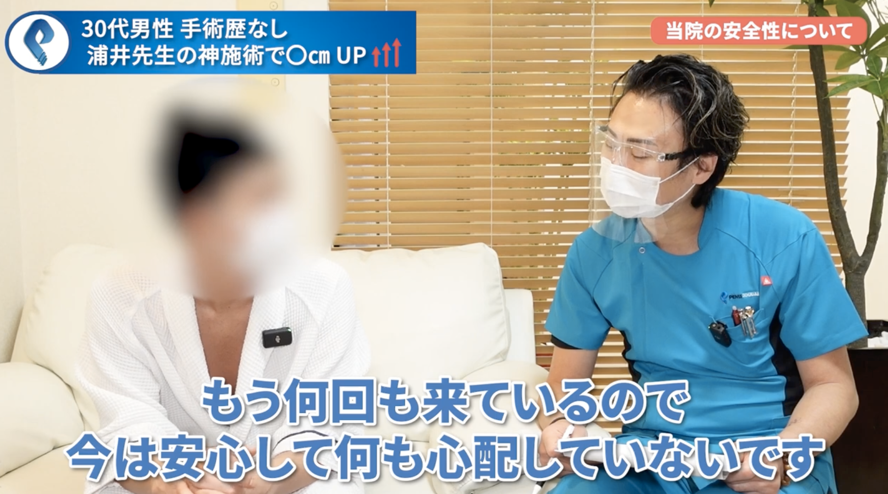 浦井院長なぜ私がこの質問をするかというと、前にインタビューの中で説明しましたが、当院のやり方は12年くらい日本でやっていますが、リスクやダメージはないけれど、ペニスに効果が出るまで時間がかかります。