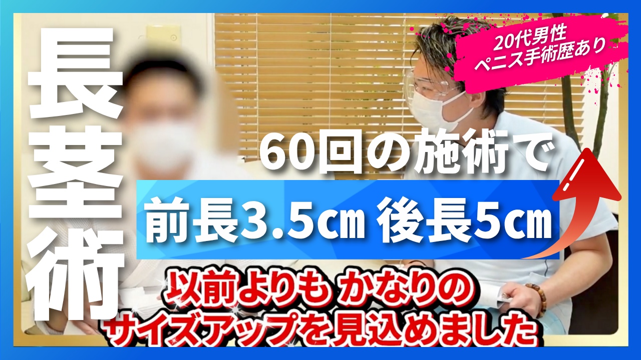 手術しない長茎術革命の60回施術で前長3.5㎝ 後長5㎝アップした事例