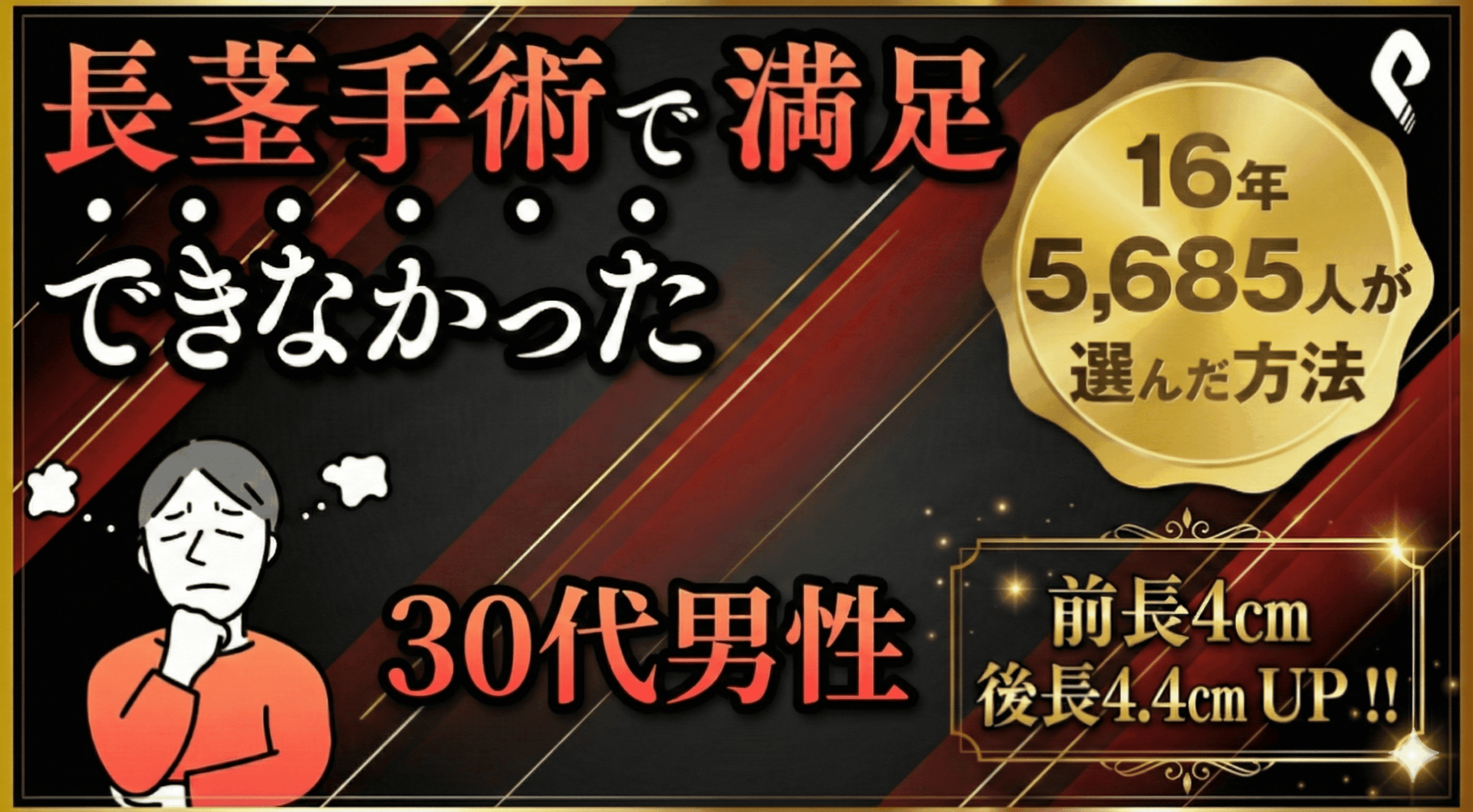 手術しない長術茎革命で前長4㎝、後長5.3㎝アップ!リスクなし後遺症なしの安全施術